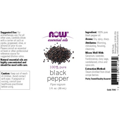 나우 Now, 100% 퓨어, 검은 후추, 에센셜 오일, 1 fl oz (30 ml) > 나우 푸드